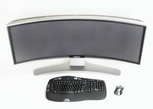 1. Следующий монитор был создан усилиями двух фирм: NEC и Alienware. Точнее монитора два, но они похожи друг на друга, как близнецы. Фирмы до сих пор спорят, кто первый придумал такую моель. Как видно на фото – он имеет изогнутый вид и по площади экрана равен двум обычным мониторам. В принципе такая махина гармонично сочетается с изогнутой клавиатурой.