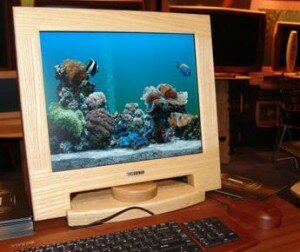2. Монитор прям радует глаз всех, кроме пожарников. Действительно, фраза “у меня сгорел монитор” может принимать зловещие оттенки с этим красавцем. Целиком из дерева, он больше смахивает на фоторамку.