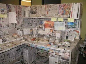 3. Это рабочее место – настоящая находка для любителей почитать газетки. Информации там почти столько как на одной флоппи-дискетке. Сам компьютер на этой фотографии даже и не видно.
