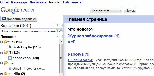 Google Reader – это удобное хранилище RSS лент. Принцип работы программы прост. Вы подписываетесь на RSS ленту любого сайта или блога. И все ваши ленты аккумулируются в онлайне на серверах гугла.