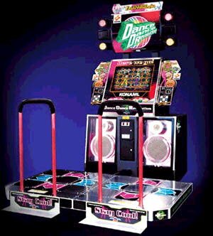 Dance Dance Revolution – это серия танцевальных игр от компании Konami. Смысл их в том, что есть танцевальная площадка, состоящая из четырёх панелей: вверх, вниз, влево, вправо. На экране игроку показывается на какую панель нужно наступить в такт музыке и он должен повторять движения. При каждом правильном нажатии у игрока пополняется шкала жизни, при неправильном — уменьшается. Смысл игры — не допустить падения шкалы до нулевого уровня.