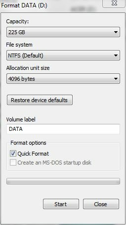 1) появится окно Format Съемный диск (на скриншоте примерное окно – такое показывается в моей английской windows 7)