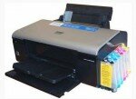 Для тех, кто хочет печатать много и дёшево, создана СНПЧ (система непрерывной подачи чернил). Суть её заключается в том, что теперь чернила хранятся не в картриджах, а в специальных ёмкостях. Удобство очевидно – чернил в них вмещается в 10-15 раз больше. Да и дозаправку проводить очень легко – просто откручиваете крышку и заливаете чернила. Вместо штатных картриджей устанавливаются специальные, с «хитрым» чипов. Epson использует чипы, которые следят за уровнем чернил и как только в одном из картриджей они кончаются, то принтер перестаёт печатать. И не важно – понадобится ли этот цвет при дальнейшей печати. «Замени картридж и печатай дальше» – как бы говорит принтер. А в специальных картриджах используется другой чип, позволяющий сбрасывать показания по уровню чернил.